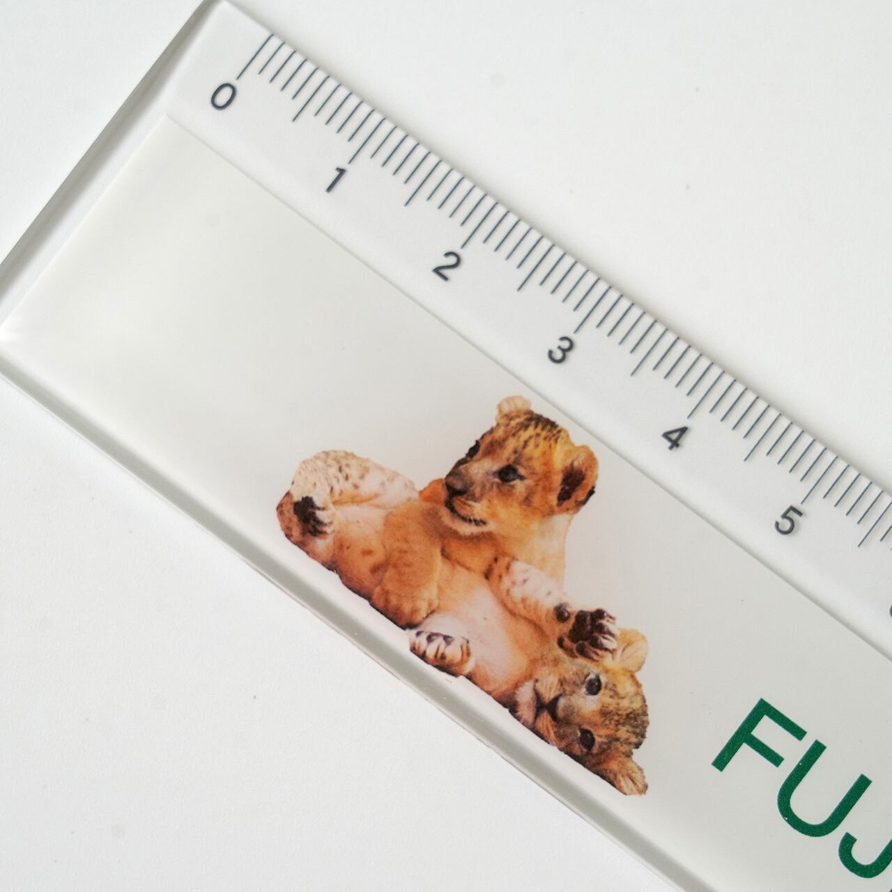 この定規の一番のポイントは何といってもかわいい赤ちゃんライオンの双子が写真です!筆箱にも入れやすい15センチ定規で、学習や工作の際に大活躍します。クリア定規なので、計測するものが透けて見え、測定しやすいのもうれしい♪