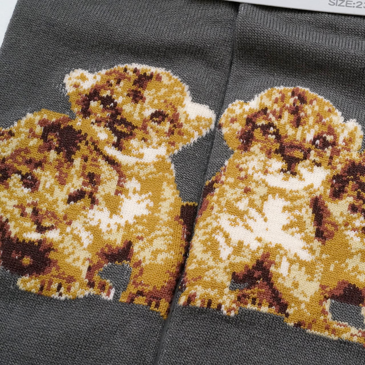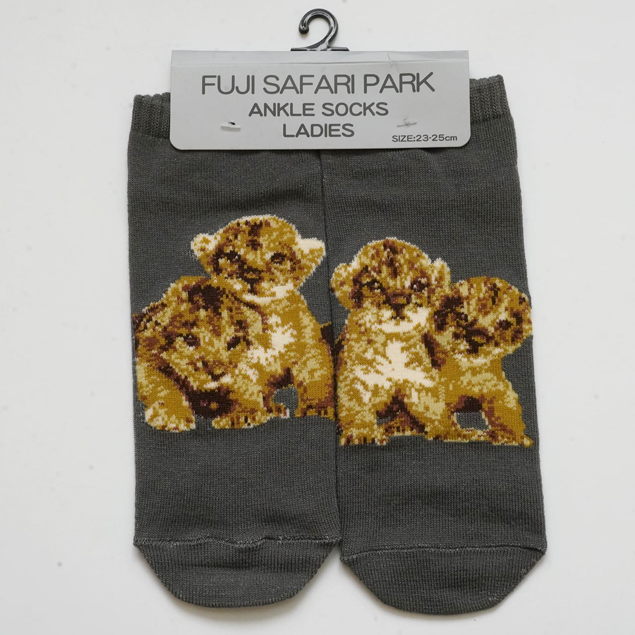 このかわいらしい靴下には、四つ子の赤ちゃんライオンがデザインされており、見るたびにほっこりとした気持ちになります!足裏側には肉球のデザインが施されており、足元を可愛らしく彩ります。