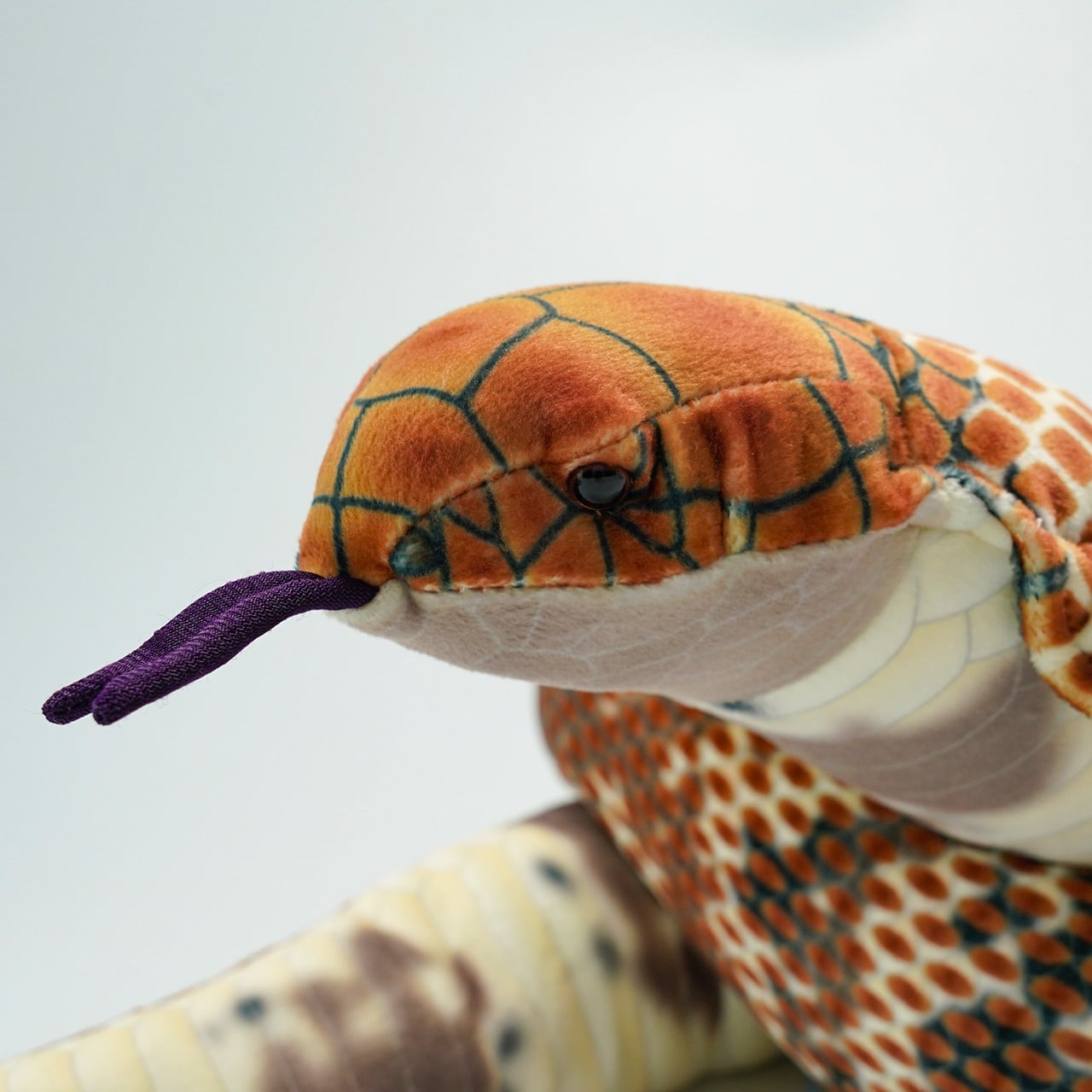 チョロリとでた舌や、細かな鱗模様がヘビ好きにはたまらないぬいぐるみです。