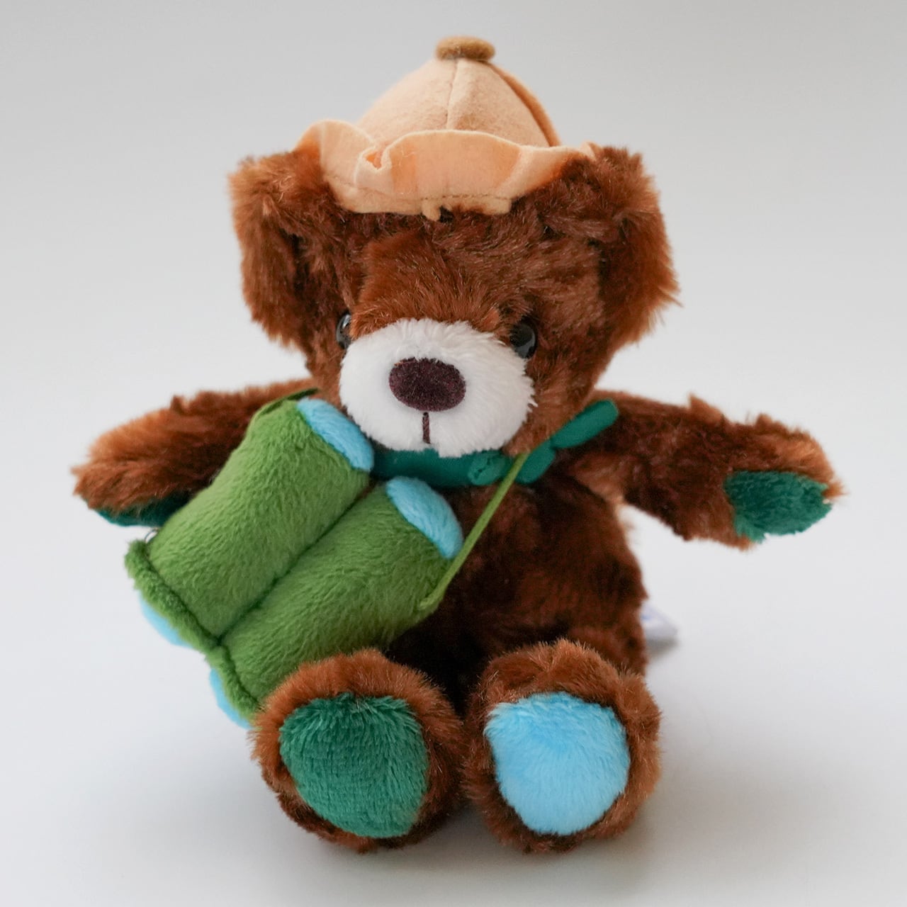 くまさんの頭にはサファリハットが!!首元には双眼鏡とバンダナが付いています。